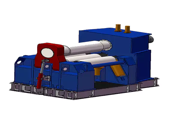Para cilindros de grande diâmetro, ano Dispositivo de suporte superior e inferior é fornecido para evitar o colapso do material e garantir arredondamento durante o processo de laminação.