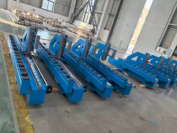 Esse sistema automaticamente alimenta chapas ou chapas metálicas no freio de pressão para processamento. Normalmente, consiste em uma esteira transportadora ou sistema de roletes que transporta o material até a área de flexão. Alimentadores automáticos de chapa são ideais para ambientes de produção de alto volume e ajudam a minimizar o manuseio manual.