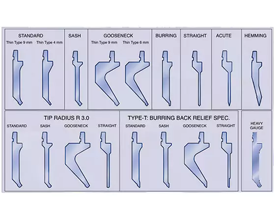 Oferecemos ferramentas para freios de pressão especialmente projetadas para acomodar uma variedade de aplicações de curvatura. Cada ferramenta é feita de aço liga premium 42CrMo, que tem uma força notável, durabilidade, e resistência ao desgaste. Aumentar a vida útil e preservar a qualidade constante da flexão, Cada ferramenta é tratada termicamente com precisão.
