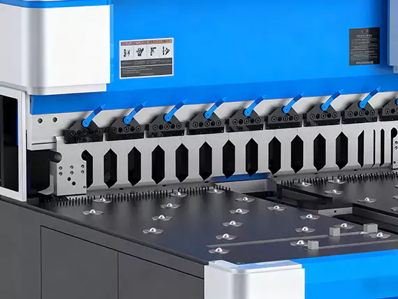 Nossas máquinas funcionam Grampos rápidos manuais padrão Amada-script, permitindo que os operadores Segure e libere as ferramentas rápida e facilmente, Melhorar a velocidade de configuração e garantir posicionamento confiável das ferramentas.